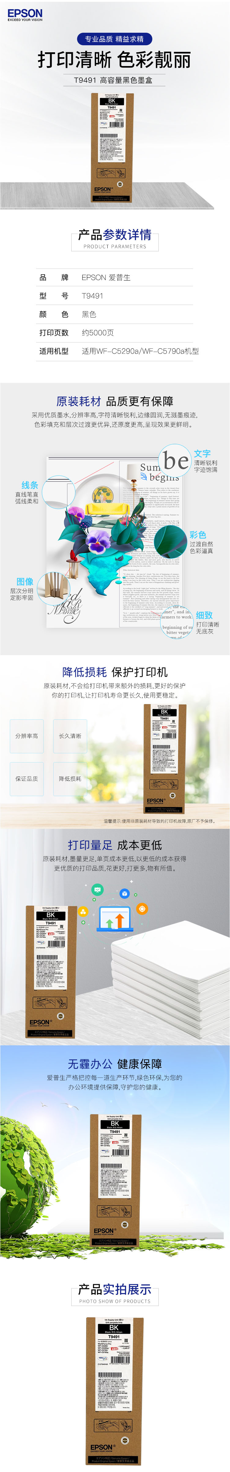 愛(ài)普生T9491黑色墨盒(WF-C5790a) 自營(yíng)