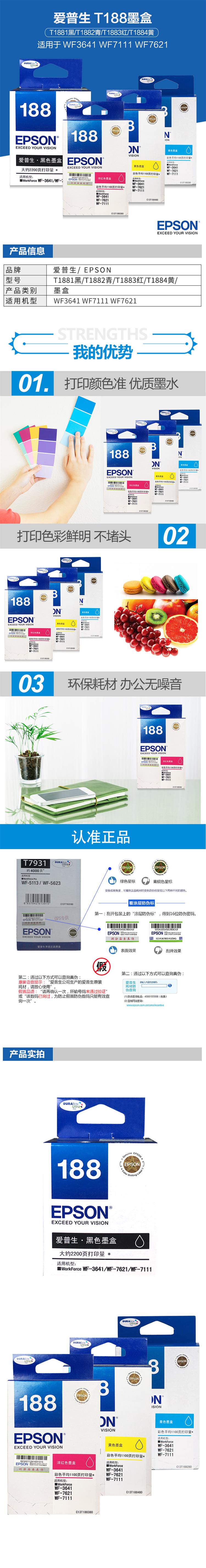 愛普生(EPSON)T1881 黑色墨盒 適用WF3641/WF7111/WF7621/WF7218/WF7728 自營