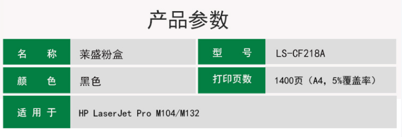 萊盛(laser) LS-CF218A 黑色粉盒 適用于 HP LaserJet Pro M104/M132 自營
