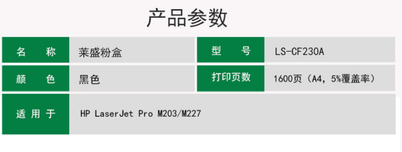 萊盛LS-CF230A粉盒適用于(帶芯片)HPLaserJetProM203/M227 自營(yíng)