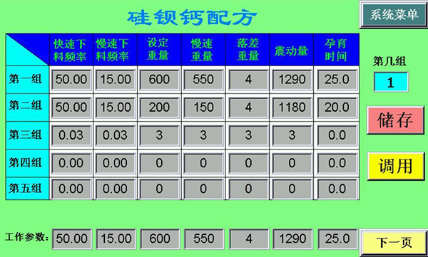國內(nèi)大多數(shù)的廠家選用的方式是控制孕育流量(單一的螺旋給料或者螺旋給料加流量計(jì)方式),基本界面如下: