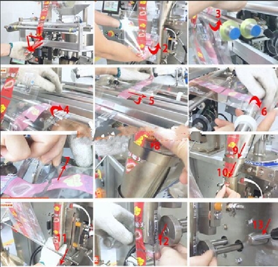 立式顆粒包裝機使用的是PE和復(fù)合膜這兩種包裝膜,兩種包裝膜的換膜流程都是一樣的。